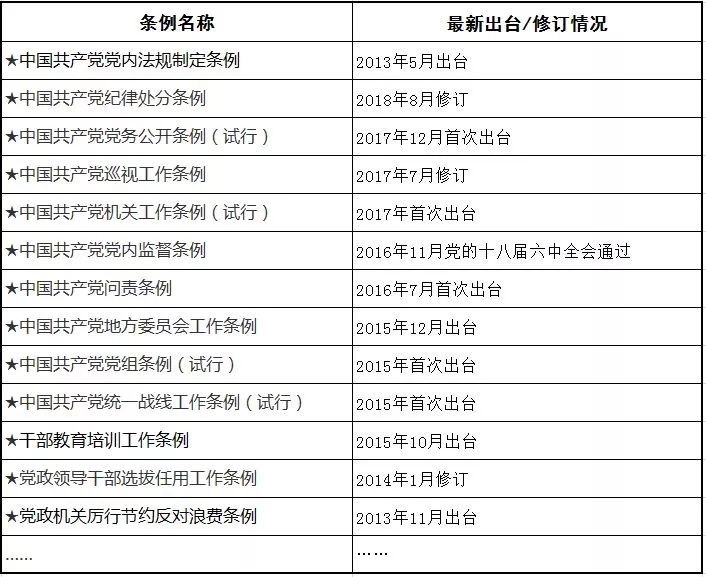 有兴趣的同志们,也可以关注一下关于中共中央印发《中央党内法规制定工作第二个五年规划(2018-2022年)》的新闻报道,那里提到了未来五年内,很多党内法规的制定、修订计划,要及时跟踪学习哦!