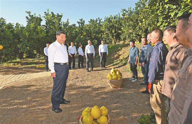 离开时,习近平同村民们亲切道别。他叮嘱,党和政府要继续加强对老区的政策扶持,老区广大干部群众要齐心协力、奋发图强。他祝愿乡亲们的日子过得像金柚一样又甜又美。