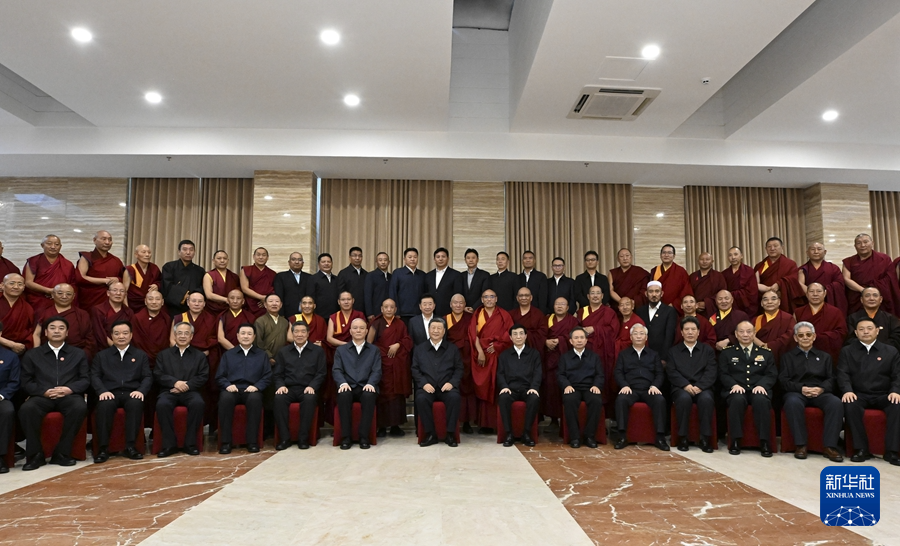 8月20日下午,中共中央总书记、国家主席、中央军委主席习近平在拉萨亲切接见西藏自治区宗教界爱国人士和寺管会干部代表,并同大家合影留念。