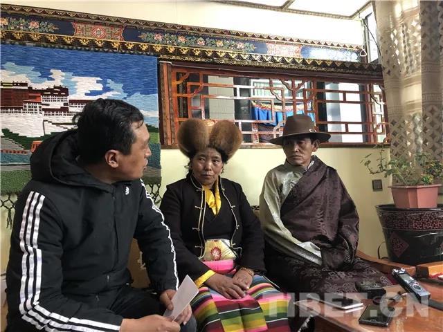 图为克松村村民边巴(右一)畅谈美好生活。