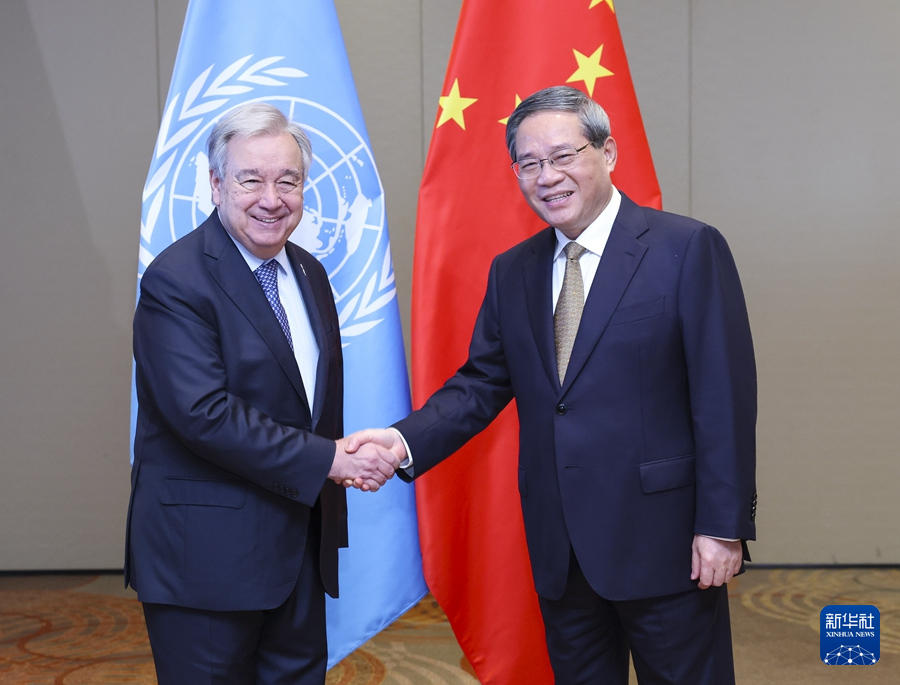 李强指出,国际形势越复杂,越要坚持和维护联合国权威。中方坚定维护联合国在全球治理中的核心地位,愿推动各方一道践行真正的多边主义,更好推进联合国各项事业。目前全球安全形势严峻,中国为推动热点问题的政治解决作了大量劝和促谈努力,将继续支持联合国为推动紧张局势降温发挥独特作用。各方应当把发展置于国际议程优先位置,携手加强全球发展合作,把资源优先投入减贫、教育、就业、能力建设等重点领域,重振全球发展伙伴关系。中国作为负责任的发展中大国,将继续坚定扩大开放,同各国分享机遇,共同发展。中方支持尽快补齐人工智能、网络空间、极地、外空等新兴领域治理短板,支持联合国为此发挥主渠道作用。